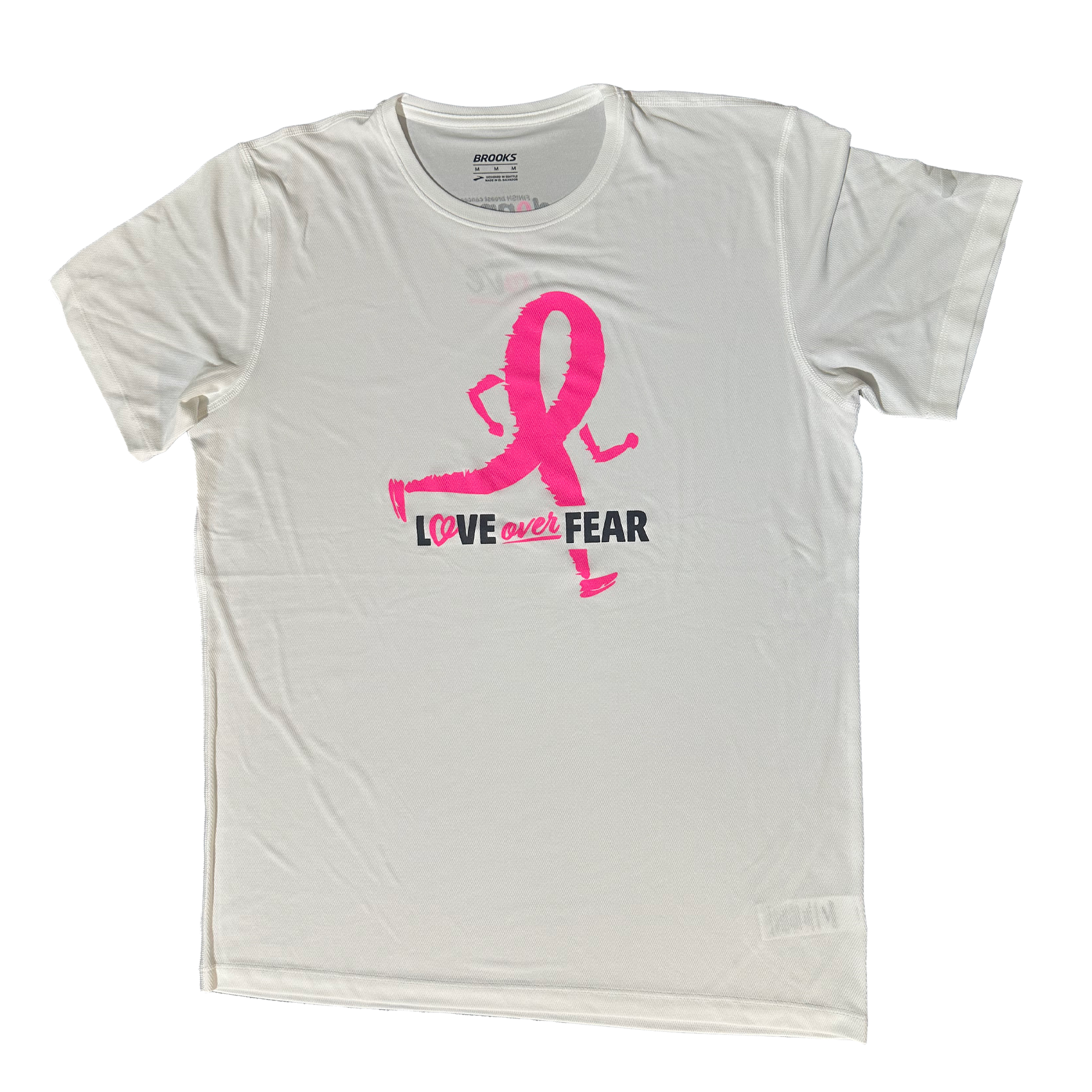 | Go the distance in the Brooks Podium Short Sleeve — a lightweight performance tee with moisture-wicking fabric to keep you cool and dry, and flatlock seams to prevent chafing on every run. Finished with branding in The DONNA Foundation’s signature running ribbon design celebrating our “Destination: Love” theme — the perfect training top for your journey to DONNA Marathon Weekend. |